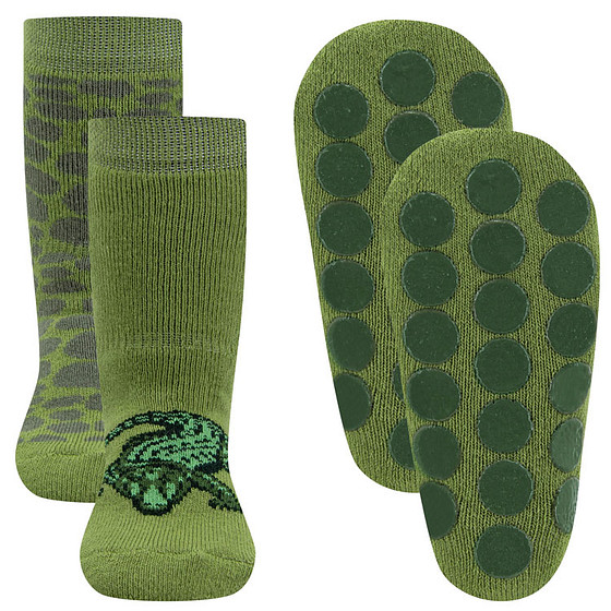 2-pack Antislipsokken Ewers - Groen met Krokodil & Groen met Donkergroene Schubben - Noppen Antislip