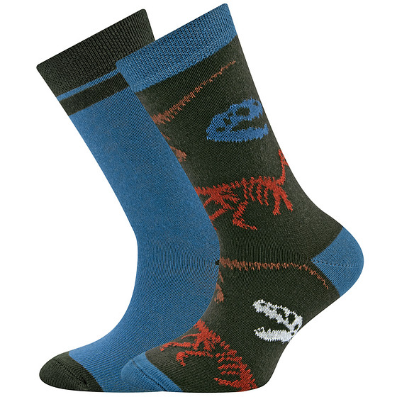 2-Pack Kindersokken Ewers Jongens - Set - Groen met Dino Skeletten Oranje/Grijs & Staalblauw met Groene Band