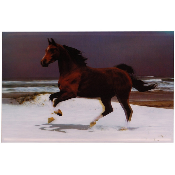 Gave 3-d poster met de afbeelding van een galopperend paard. Door de driedimensionale print komt de poster bijna tot leven. Leuk om een ruimte mee aan te kleden.