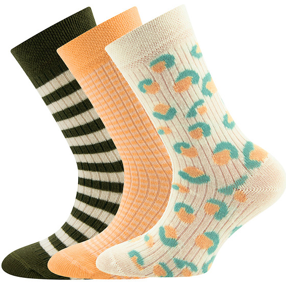 3-Pack Kindersokken Ewers met Ribpatroon - Set van 3 paar - Perzik/Beige/Groen met Vlekmotief en Streepjes