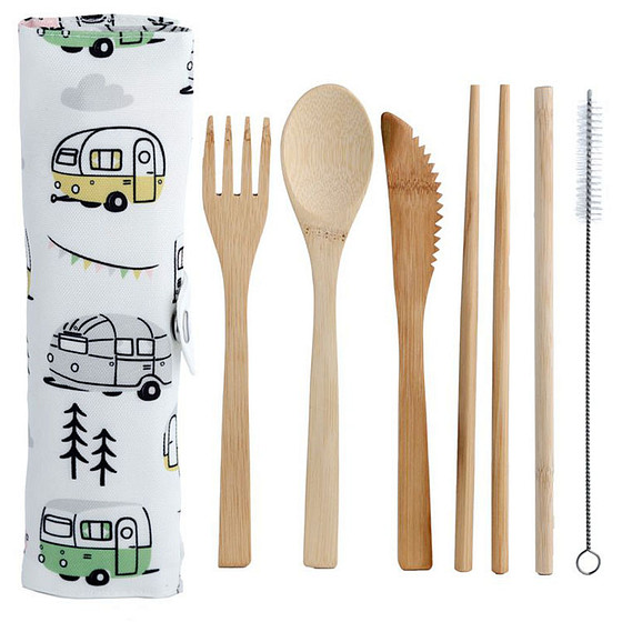 6-delige Bestek set Caravans in het Bos 100% Natuurlijk Bamboe - Wit -