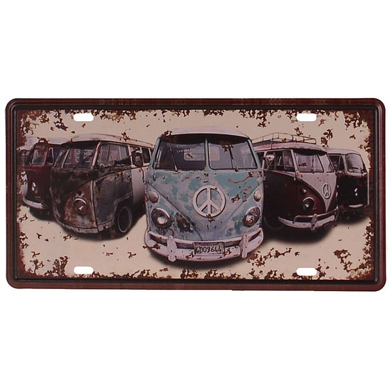 Metalen plaat met een afbeelding van Volkswagenbusjes.
