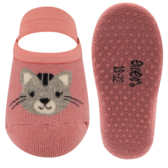 Antislipslofjes Ewers Oudroze met Grijs Poesje - Elastische Voetband - Silconenen Nopjes