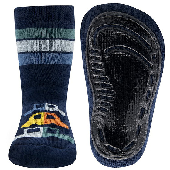 Antislipsok Donkerblauw met Autos en Strepen - Ewers