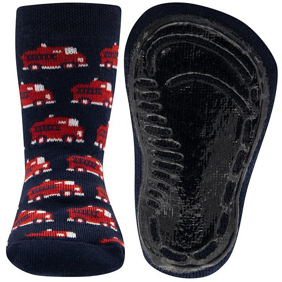 Antislipsok Ewers donkerblauw met Rode Brandweerwagens.