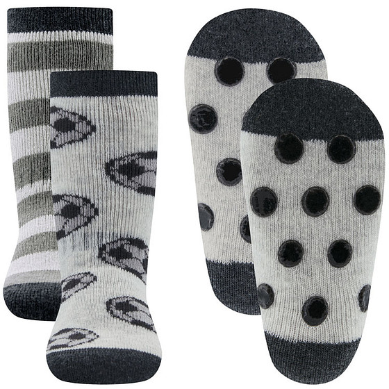 Antislipsok Ewers 2-Pack - Voetballen & Strepen - Set van 2 Paar - Grijs Tinten - Antislipnopjes