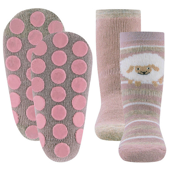 Antislipsok Ewers 2-Pack - Wit Schaap en Wit/Beige Streepjes & Effen Oudroze - Set van 2 Paar - Oudroze & Ecru/Beige Accenten - Antislipnopjes