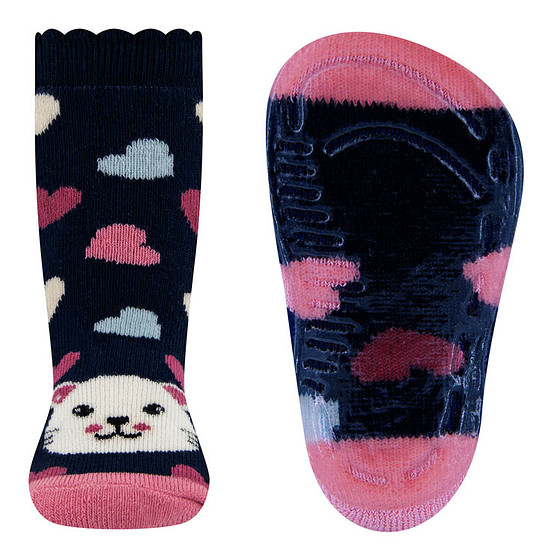Antislipsok Ewers - Donkerblauw en Oudroze - Poezenhoofd met Hartjes - Siliconenzool