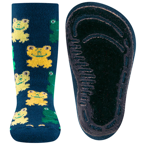 Antislipsok Ewers Donkerblauw met Grappige Kikkertjes in Groen-Geel