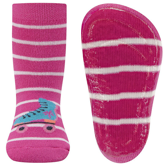 Antislipsok Ewers - Fuchsia Roze met Witte Strepen - Lichtblauwe Rollerskates
