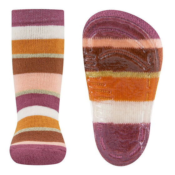 Antislipsok Ewers - Gestreept & Goudkleurig Lurex - Oudroze/Perzik/Bruin/Oranje/Ecru - Siliconenzool - Volwassenmaat