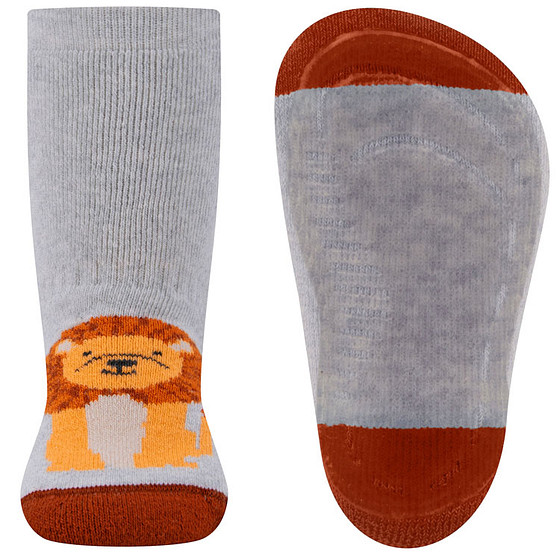 Antislipsok Ewers - Lichttgrijs en Bruin met Cartoon Leeuw