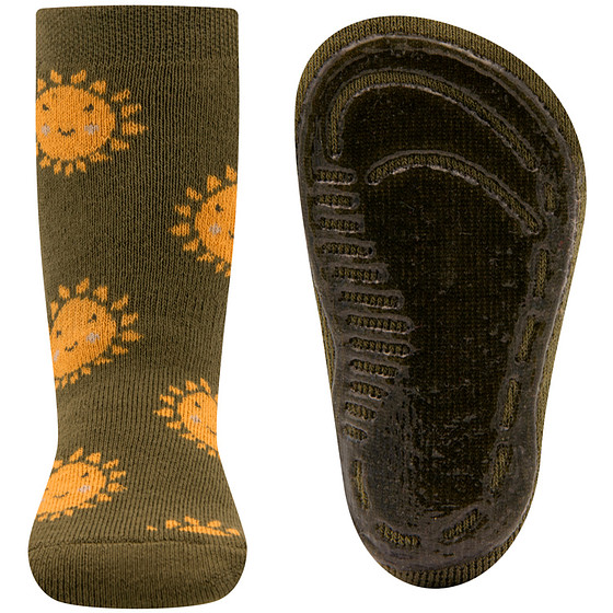 Antislipsok Ewers - Olijfgroen met Warm Gele Vrolijke Zonnen