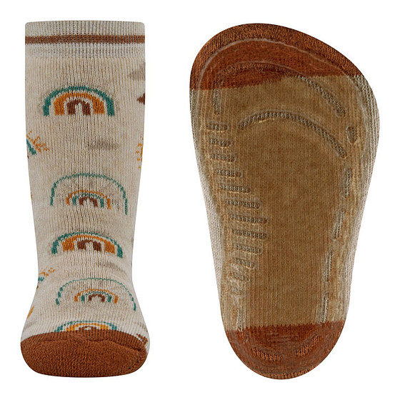 Antislipsok Ewers - Regenbogen&Wolken&Hartjes - Beige/Lichtbruin - Siliconenzool