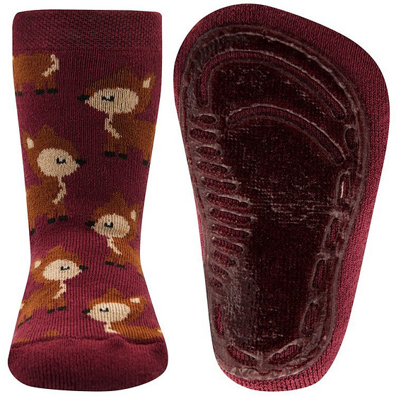 Mooie Antislipsok van Ewers - Donkerroze / Wijnrood met leuke speelse hertjes.