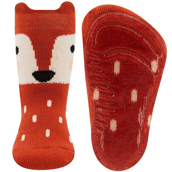 Antislipsok Ewers Oranejebruin met hertenhoofdje en witte vlekjes.