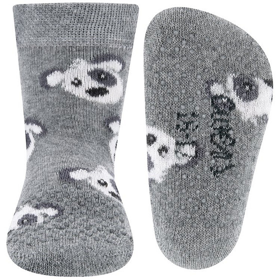 Grappige hondenkopjes sieren deze lichtgrijze sokken. Natuurlijk zijn deze kruipsokken heel leuk om te zien, maar ze zijn daarnaast ook heel praktisch! De sokken hebben fijne antislip nopjes op de onderkant, maar ook bovenop de tenen. Hiermee hebben de baby's meer grip tijdens het kruipen.