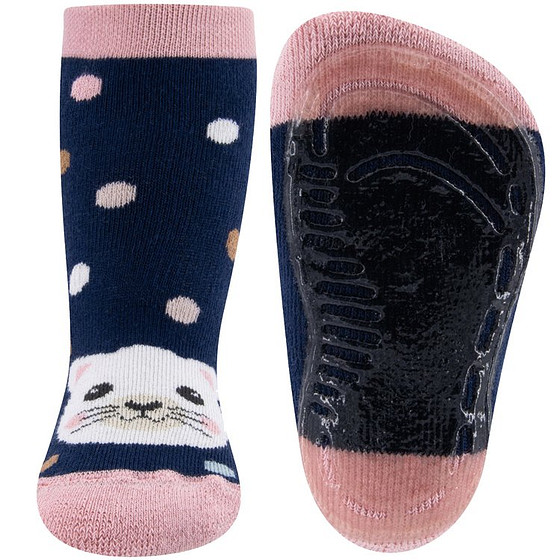 Antislipsokken Donkerblauw met Poezenhoofd en Stippen