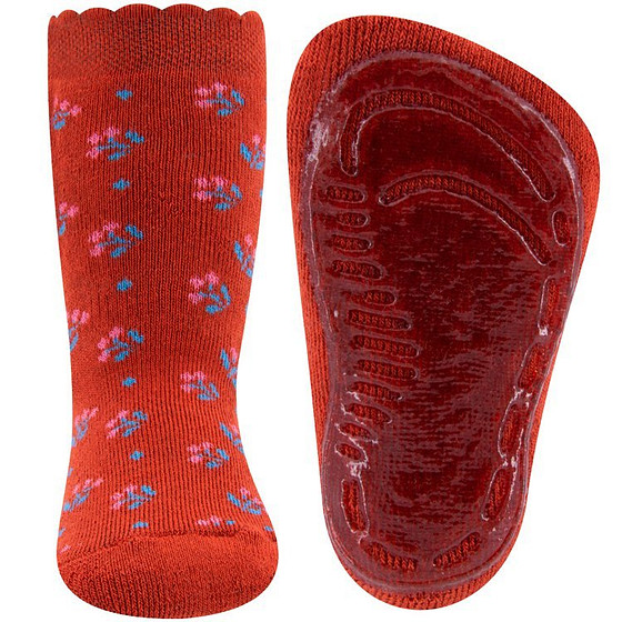 Antislipsokken Donkeroranje met Bloemetjes