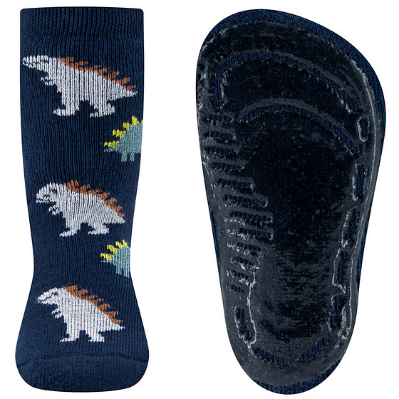 Antislipsokken Ewers Kindermaat - Donkerblauw met Dinosaurussen Grijs&Groen - Siliconenzool