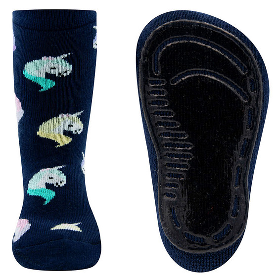 Antislipsokken Ewers Kindermaat - Donkerblauw met Eenhoorns Pasteltinten - Siliconenzool