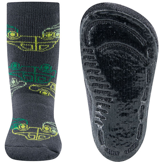 Antislipsokken Ewers Kindermaat - Donkergrijs met Autos Design Groen & Geel - Siliconenzool