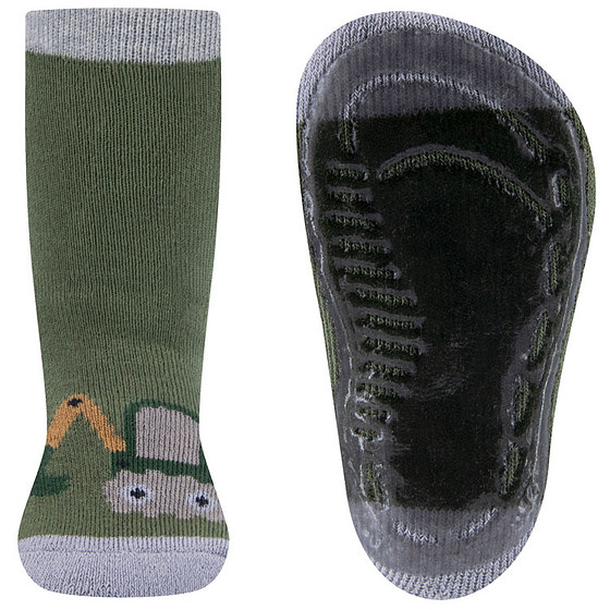 Antislipsokken Ewers Kindermaat - Groen & Grijs Graafmachine - Siliconenzool
