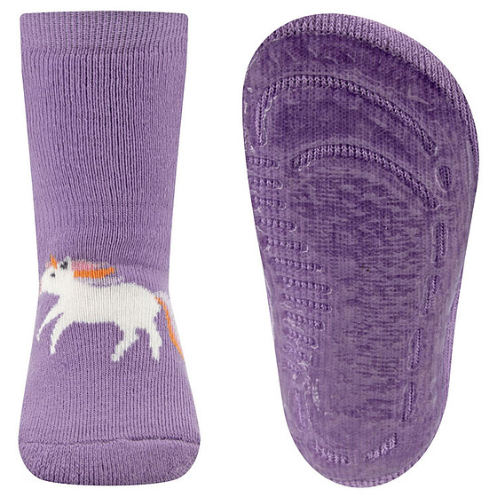 Antislipsokken Ewers Kindermaat - Lila met Eenhoorn Wit & Regenboog Kleuren - Siliconenzool