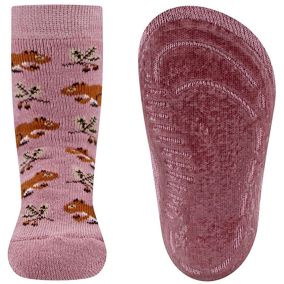 Antislipsokken Ewers Kindermaat - Oudroze met Eekhoorns Bladeren & Nootjes - Siliconenzool