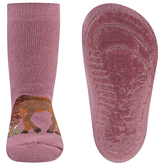 Antislipsokken Ewers Kindermaat - Roze met Paard Donkerbruin Grazend - Siliconenzool