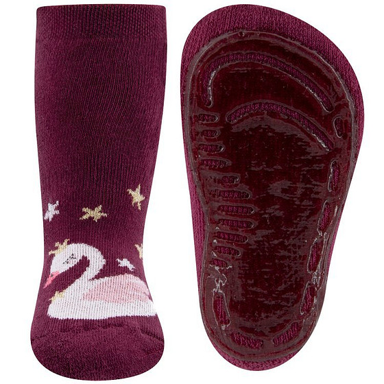 Leuke wijnrode antislipsokken met een Zwaantje.