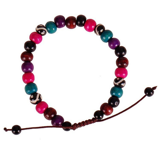 Armbandje met gekleurde houten kralen paars-roze-groen