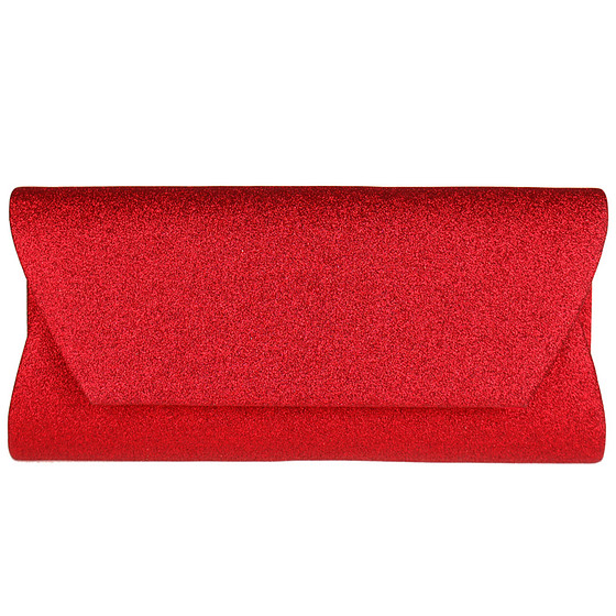 Avondtasje - Donkerrood Glitterstof - Groter Formaat - Magneetsluiting - Goudkleurige Schouderketting - 26x12.5cm