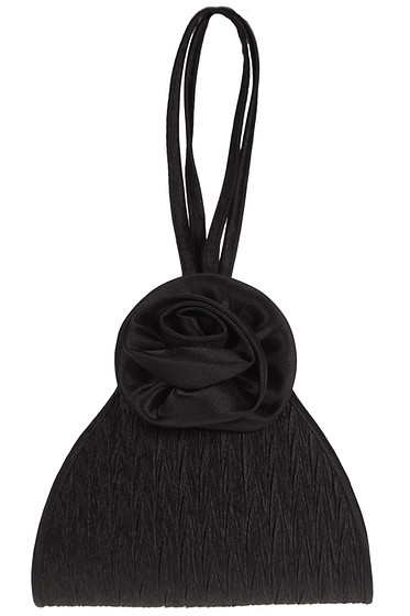 Zwart avondtasje met aan de bovenkant een bloem.