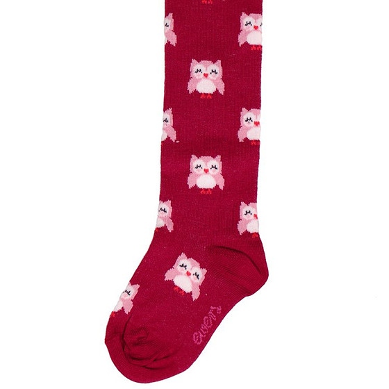 Op deze donkerroze maillot zie je lieve kleine roze uiltjes. Superfijn voor deze winter!