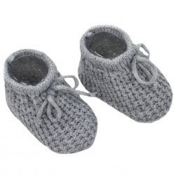 Babyslofjes Muisgrijs - Gebreid met vetertje