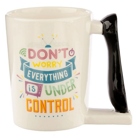 Mooie aardewerk beker met de tekst: Don't worry everything is under controll. Het handvat van deze beker heeft de vorm van een afstandsbediening. Zeer netjes uitgevoerd en mooi van kleur. Afmetingen: 11x8cm Magnetron geschikt: Nee Vaatwasser bestendig: Nee