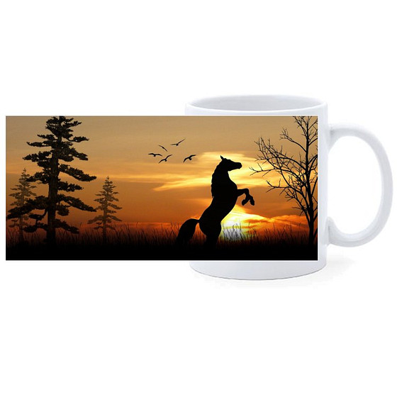 Beker - Paard Steigerend in Bos Sunset