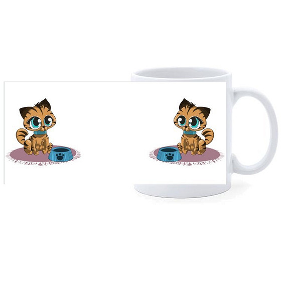 Beker - Poesje met Voerbak Grote ogen - Getekend