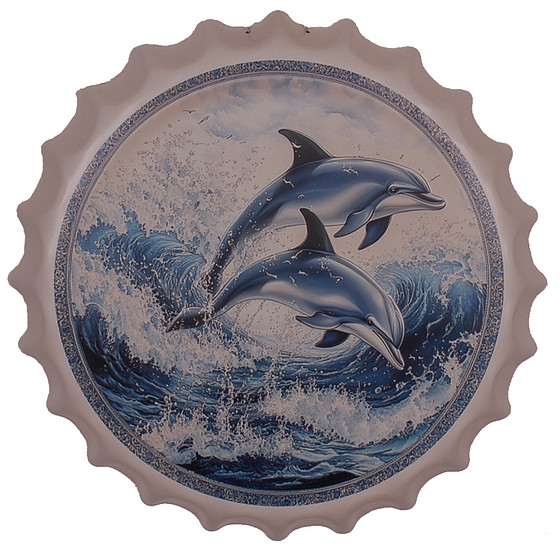 Bierdop/Kroonkurk Metaal - Dolfijnen & Golven - Blauw/Wit - 40cm
