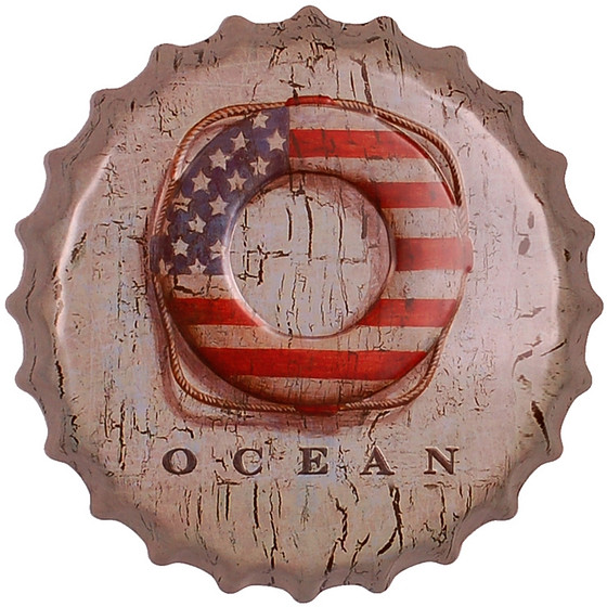Deze kroonkurk heeft een plaatje van een reddingsboei met de Amerikaansevlag.