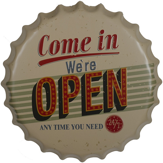 Bierdop/kroonkurk "Come in we're open"