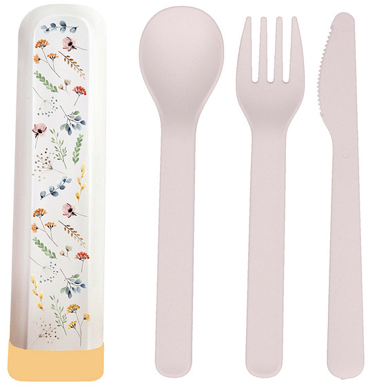 BioLoco Bestekset PLA - Wilde Bloemen - Lepel/Vork/Mes - Herbruikbaar - 16cm