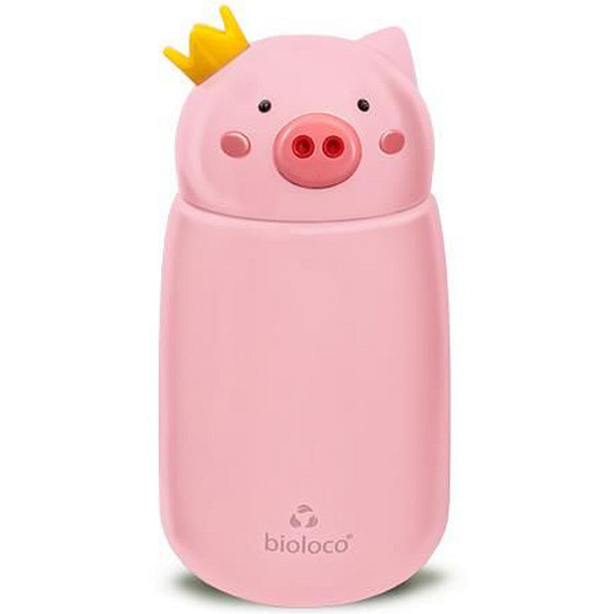 Bioloco - Thermosfles Kind RVS - Varken met Kroontje - Dubbelwandig - 320ml