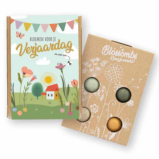 Blossombs Giftbox Mini - Bloemen voor je verjaardag - 4x Bloemzaadbommetjes - 100% Biologisch