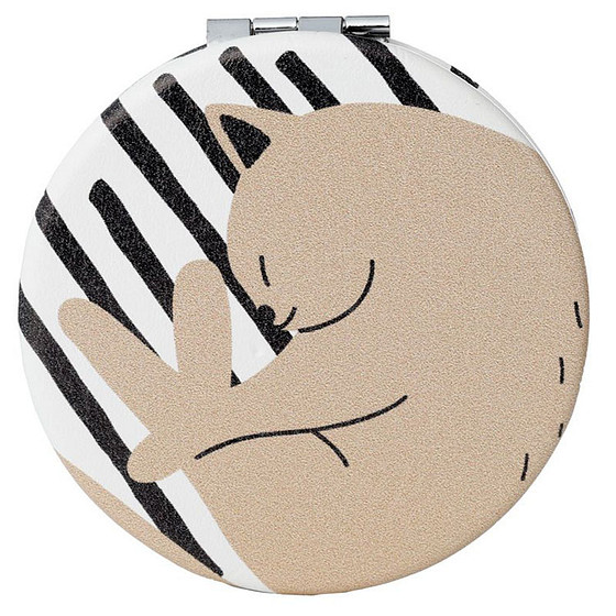 Compact Make Up Spiegeltje Slapende kat Lichtbruin - 6cm
