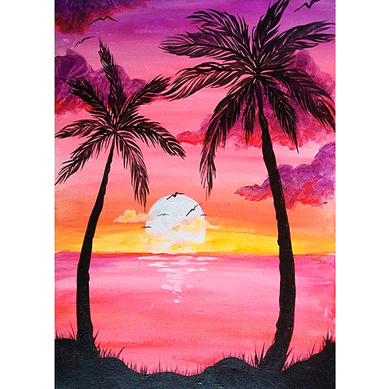 Diamond Painting Set - Paradijs Sunset - Strand & Palmbomen - incl. Pen & Wax - 30 x 40 cm