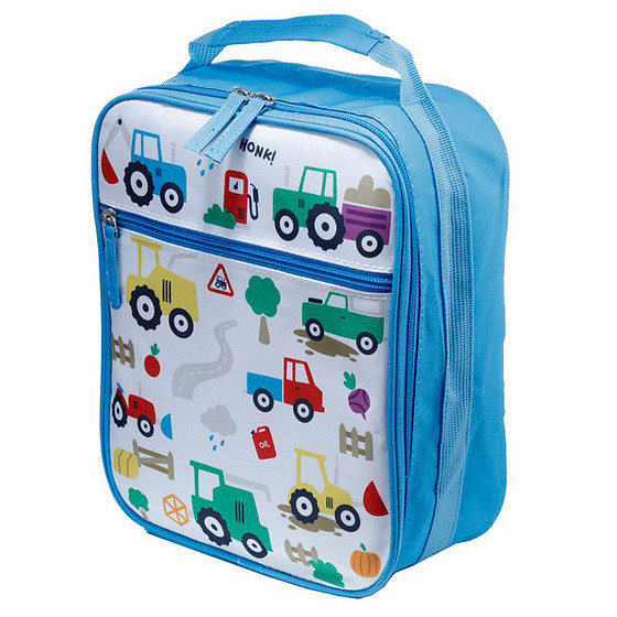 Draagbare Koeltas Kleine Gekleurde Tractors - Blauw/Wit - 26x22x10cm
