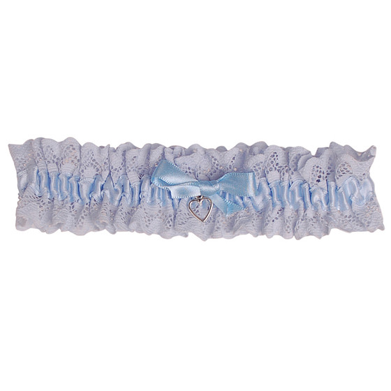 Grote maat Kousenband Blauw Broderie - blauw strikje en zilverkleurig hartje