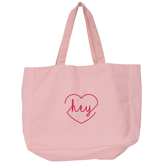 Grote tas - 'Hey' in Hart - Biologisch Katoen - 48x14x42cm
